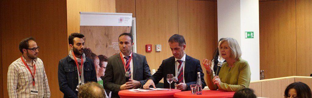 Zum Thema „Verstehen und Verstanden werden: Interkulturelle Information, Beratung, Vermittlung“ berichtete KSE-Experte Mousa Othman über die Arbeit der KSE. Seit März 2016 hat die KSE mehr als 450 Geflüchtete persönlich rund um das Thema „duale Ausbildung“ beraten. Außerdem nahmen seit Projektbeginn mehr als 120 Migrant*innen das Beratungsangebot der KSE in Anspruch. Aufgrund der geringen Kenntnisse insbesondere Geflüchteter über das Bildungs- und Ausbildungssystem in Deutschland sei ein muttersprachlicher Ansatz erforderlich, um möglichst frühzeitig über die Zukunftswege zu informieren. Die KSE leiste an dieser Stelle nicht nur Informations-, sondern auch Überzeugungsarbeit. Dies bestätigten zwei von der KSE in Ausbildung vermittelte Geflüchtete, die von ihren Erfahrungen und der wichtigen Orientierungshilfe durch die KSE berichteten. KAUSA-Seniorexperte Herbert Lindner und der von ihm betreute junge Geflüchtete beschrieben Ihre positiven Eindrücke des von der KSE ermöglichten Begleitungsprozesses.